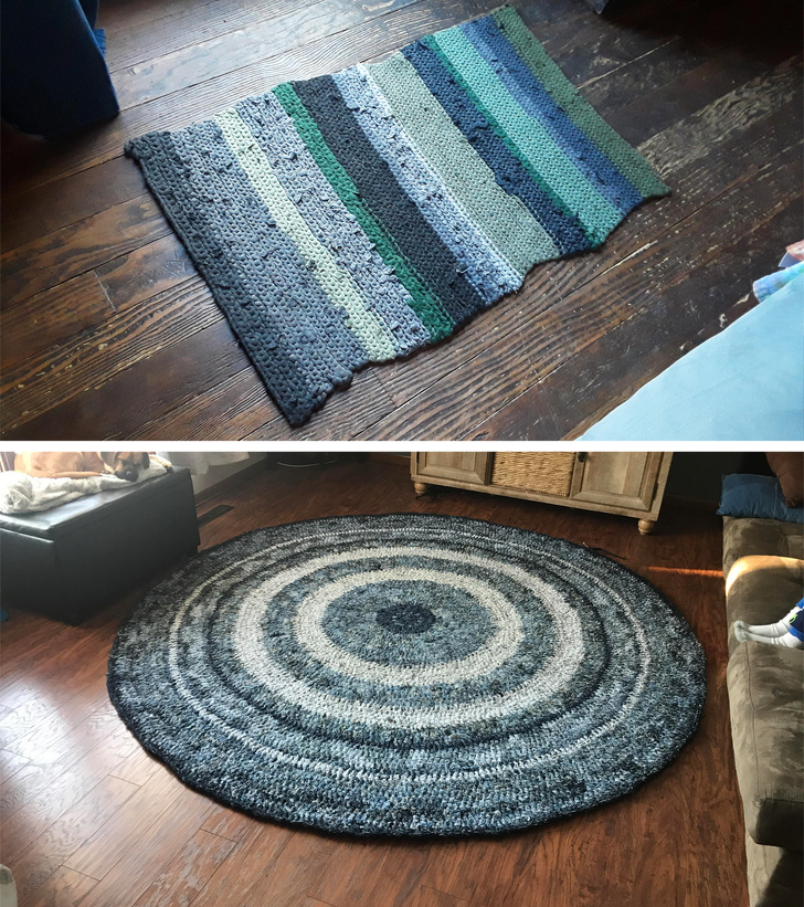 22. These upcycled rugs were created from recycled jeans, leggings, and yoga pants!