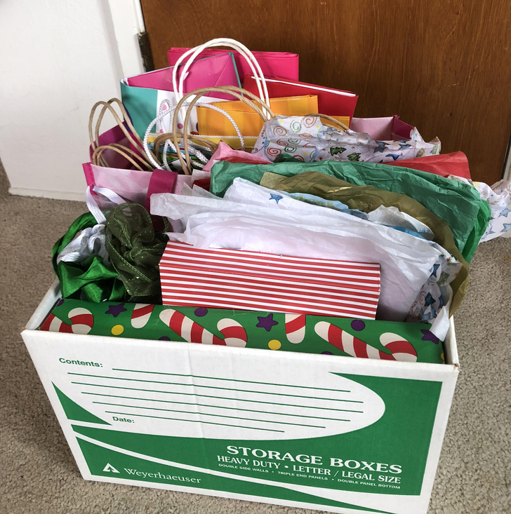 20. All the wrapping paper and gift bags have been carefully stored, so I can use them again next year!