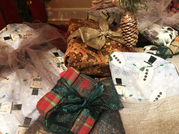 12. This family wraps their holiday gifts each year with reusable cloth and ribbon. No more wasted paper or tape!