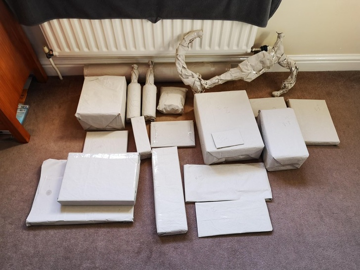 24. “I almost threw out this packaging paper and then thought ‘Why not make it into wrapping paper?!’”