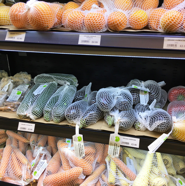 1. This grocery store sells fruits and vegetables in compostable netting.