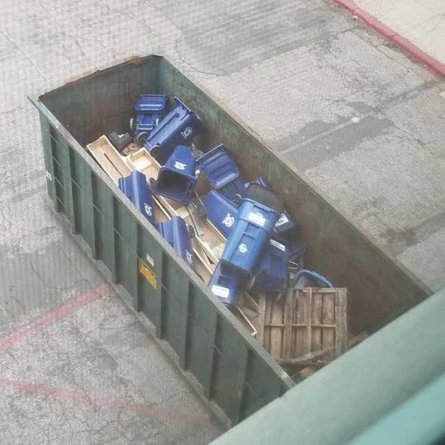 10. This company's relocating and the managers hired a huge trash container so that they could throw away their trash cans!