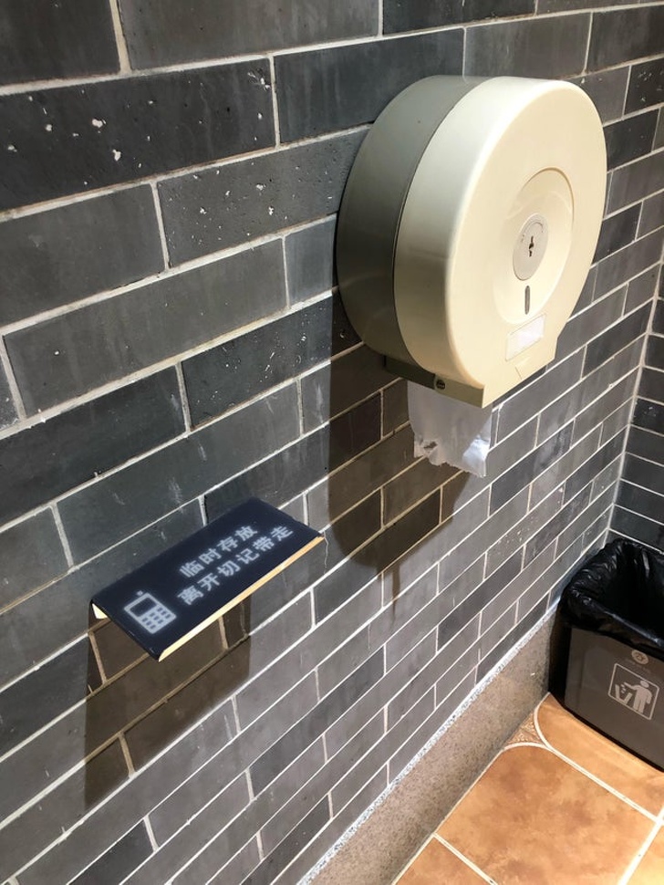19. A smartphone support in a restroom in China
