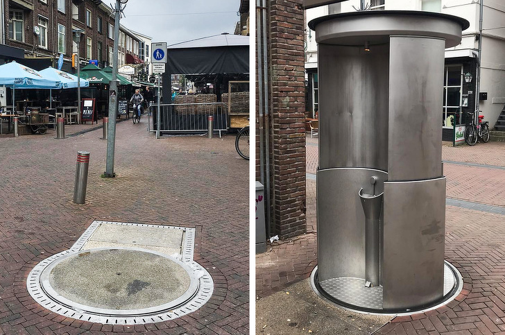 1. These restrooms "spring up" during the day and head back underground at night