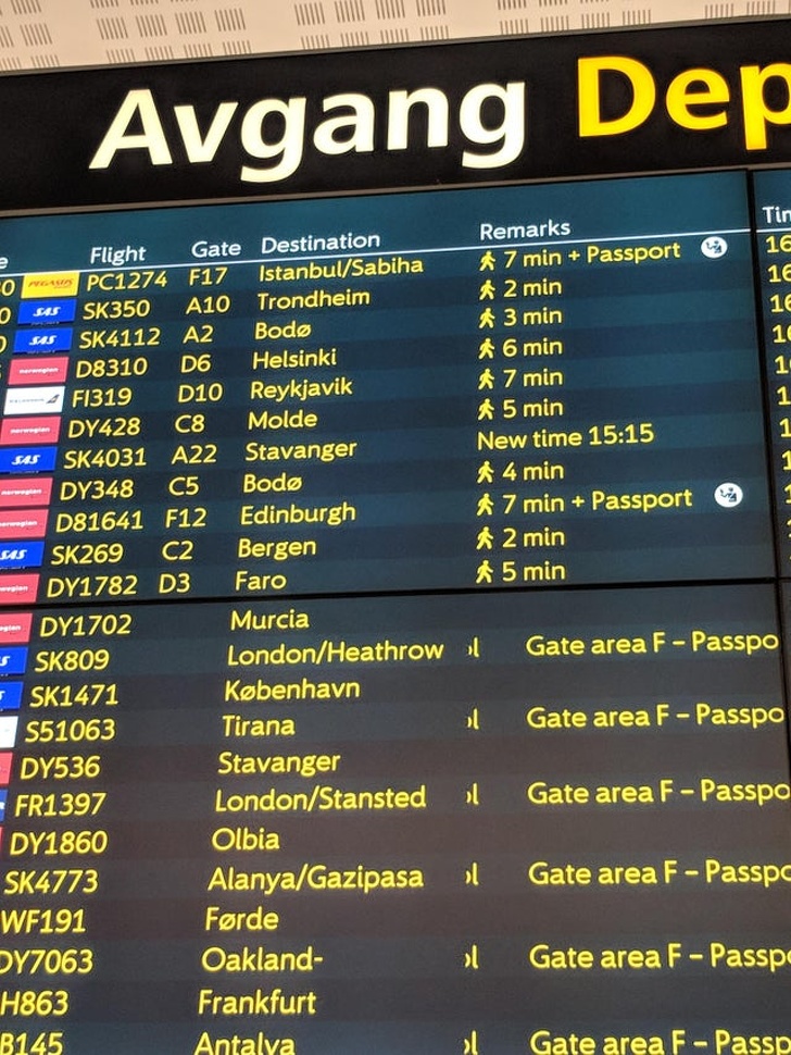 3. Oslo Airport lets you know how long it will take to get to the departure gates