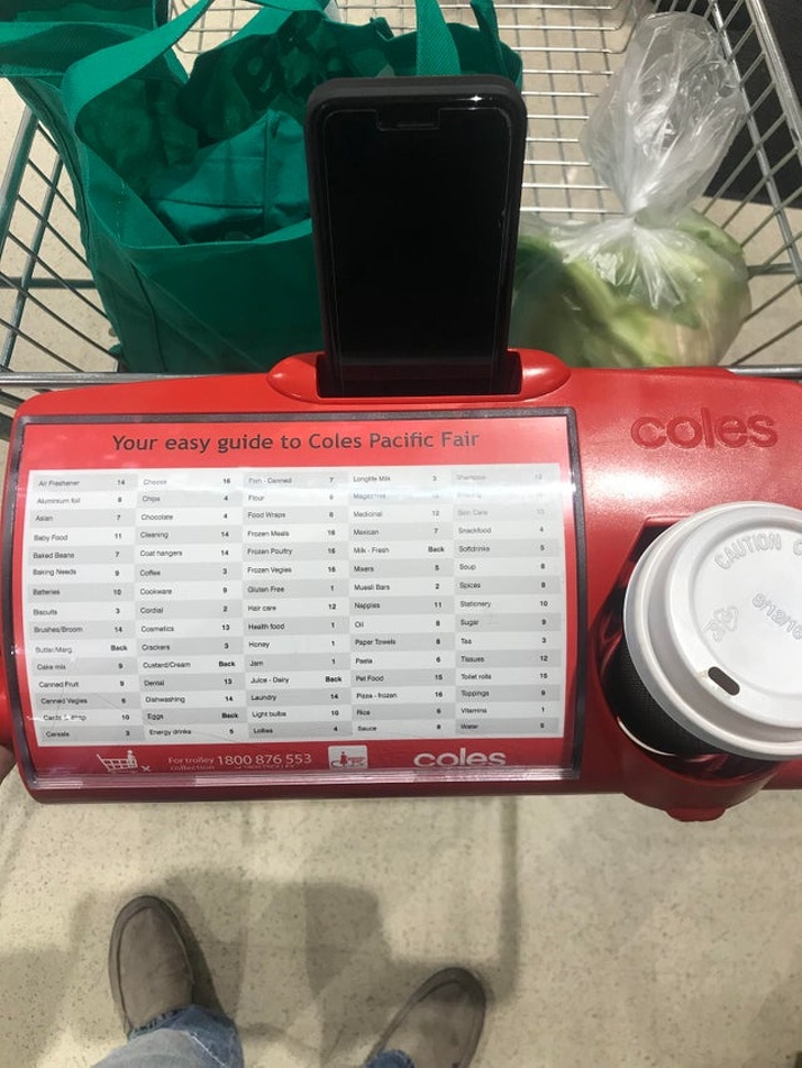 12. These shopping carts have a cup and smartphone holder!