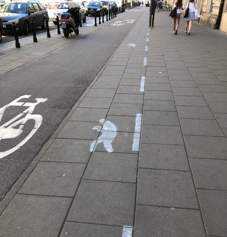 7. A sidewalk with a bicycle and "smartphone" lane