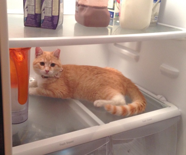 5. Something isn’t right here. In fact, we lied to you: you just saw a cat in a fridge for the second time!