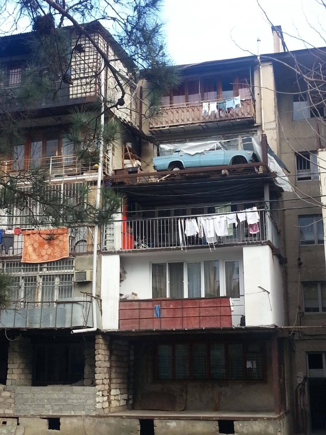 1. A car parked on the 4th floor balcony! How did they manage to get it there?!
