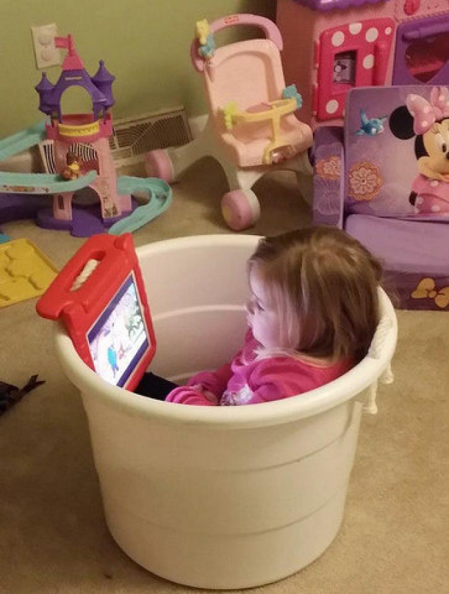 24. Why play at being a princess when you've got a plastic tub and tablet?