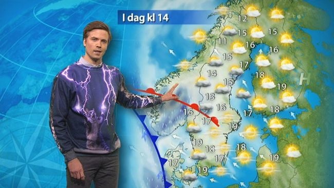 20. A Swedish weatherman wearing his favorite 'Lightning Cat' sweater