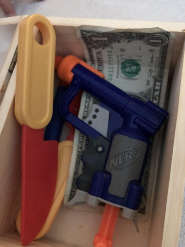13. This mom found a survival kit hidden in her 3 year-old's bedroom - complete with a knife, gun and cash!