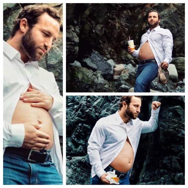 21. This guy's wife forgot about her pregnancy shoot appointment, so he decided to take her place!