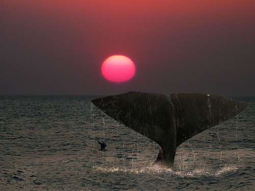 26. A whale's tail, a man in a boat and a pink setting sun - perfect!