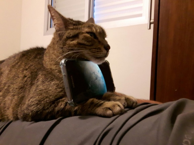 12. When you strike a 'you can sit on my lap if you support my smartphone' deal with your cat!
