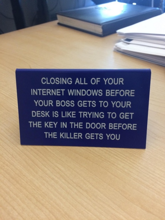 Office life... We have to get on with (or at least tolerate) our colleagues, sometimes follow dumb rules, often deal with passive aggressive managers and get our work done to a satisfactory level at the same time. So 'Bravo' to all office workers who let their humor shine through - without you we'd lose the will to live!