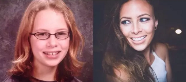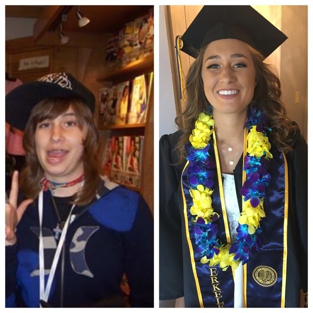"The first photo is from eighth grade, and the second is from my 25th birthday. It's amazing what 10 years can do for you!"