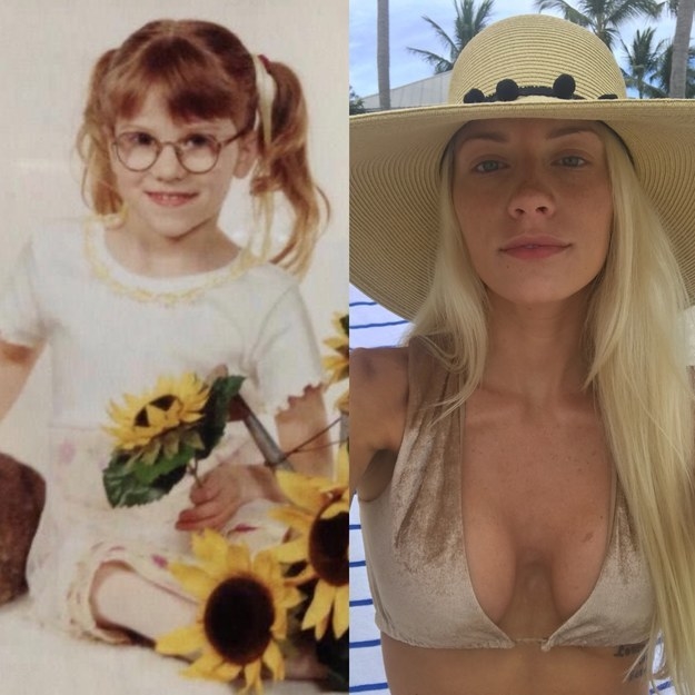 "I was 13 years old in the first pic and 23 in the second. I should probably wear my hair like that again, tbh."