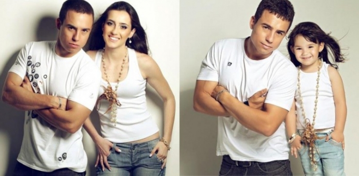 Over time, the family got back on its feet. Rafael del Col, after moving on from the tragedy, had a brilliant idea: he took old photos of him and his former wife and decided to recreate them… with his daughter this time!