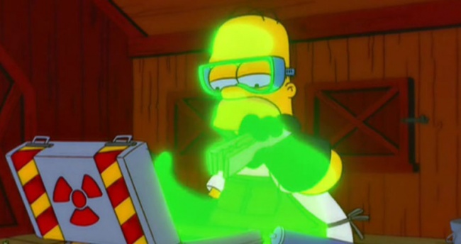 Radioactivity is invisible, but in order for audiences to 'see it', movie makers make radioactive materials glow, with fluorescent yellow or green as the commonly preferred colors. Ditto for any characters that come in to contact with a radioactive material.