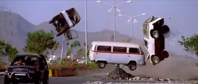 No action movie would be complete without spectacular crashes where vehicles fly around the place, but in reality none of them would be left intact when they actually hit the ground... Cars flying across rivers would disintegrate on the other side: their chassis would break into smithereens, their tires would burst and, if you're driving the car, you'll probably end up in an early grave. Ditto goes for any car that flies off the road - its speed and the effects of gravity would guarantee a deadly impact.