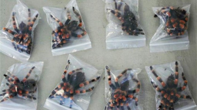 Customs officers at Schiphol Airport in Amsterdam had the fright of their lives when they searched a German couple who'd been in South America. They found 200 baggies containing a rare species of tarantula that they planned on taking home. We just hope that the spiders were confiscated and returned to their tropical paradise.