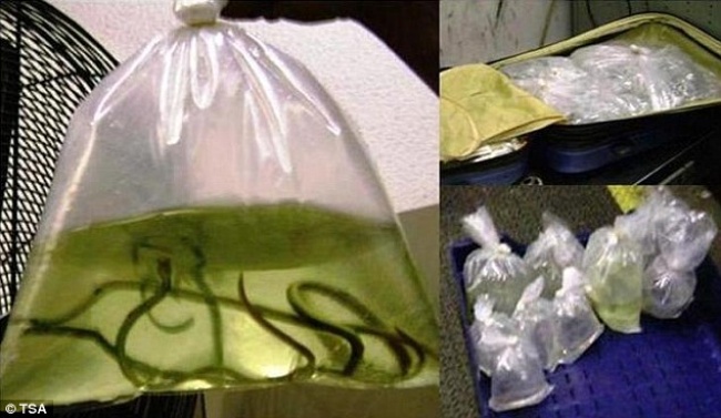 In 2007, a South Korean was found with a suitcase filled with jars and bottles containing venomous snakes. Security personnel at Atlanta Airport, where the man was stopped, never found out what he intended to do with these slithery creatures.