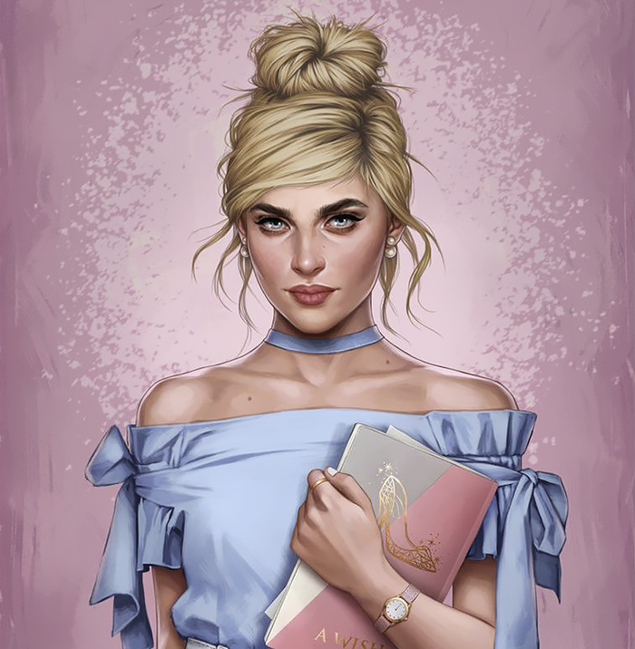 She has redesigned our childhood heroines according to 2017 trends: uninhibited, manicured nails, bling, a casual, more sexual look, and more assertiveness. And we can imagine the rest: always ready with their cell phones, taking selfies, constantly checking social networks, and the unlikely social causes they might support. In short, this is a reflection on the status of the modern woman and how it’s developed since the time of Disney.