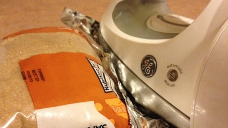 Close the opening using aluminum foil and iron it to make it airtight.