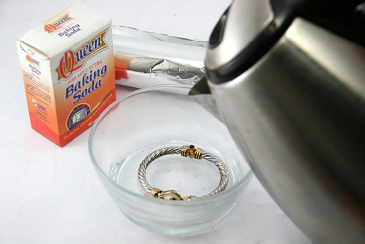 Mix some baking soda, salt, water and aluminum foil to make your oxidized silver jewelry shine.