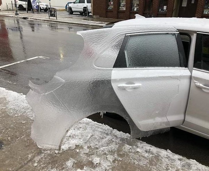 21. When ice creates a mould of a car