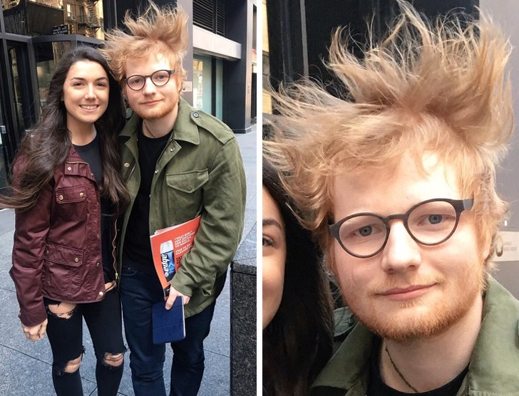 1. When you pose for a photo with Ed Sheeran just as there's a gust of wind!
