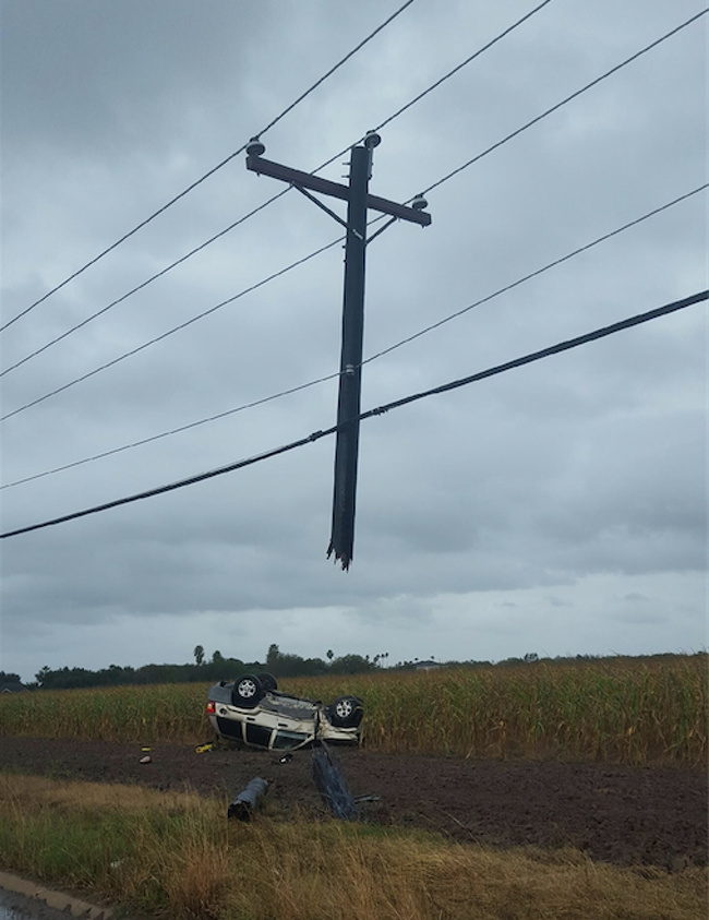 22. This car crashed into and broke a pole, but after the impact the pole was left hanging in mid-air!