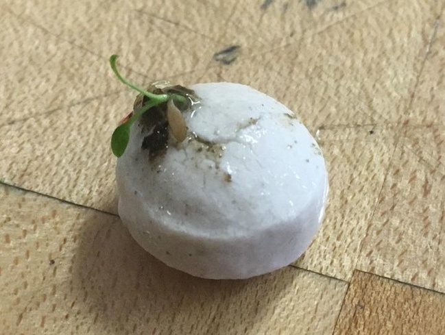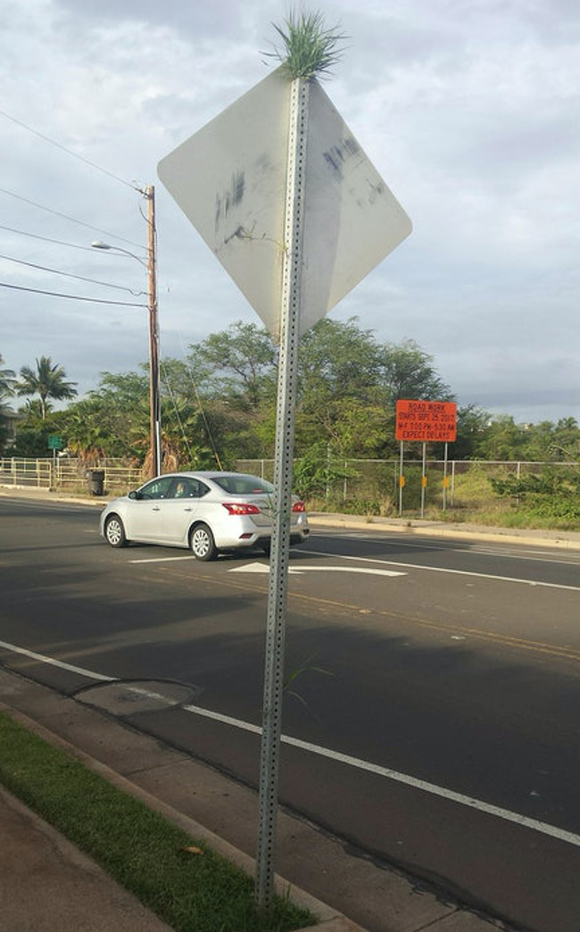 4. What do you think? Has the grass grown up through the center of this pole or has it just sprouted at the top?