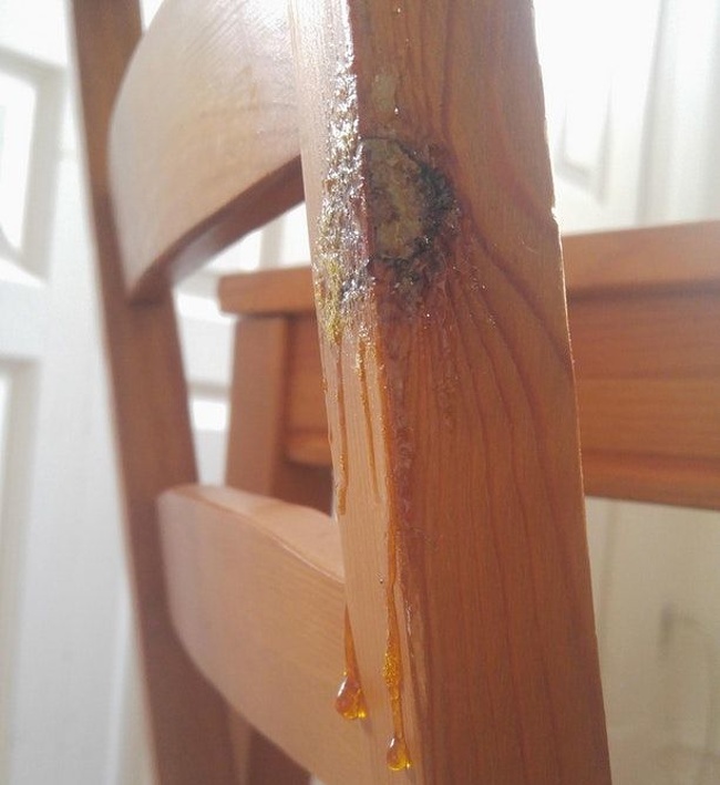 24. Proof that wood is a living material... Sap oozing from the side of a wooden chair!