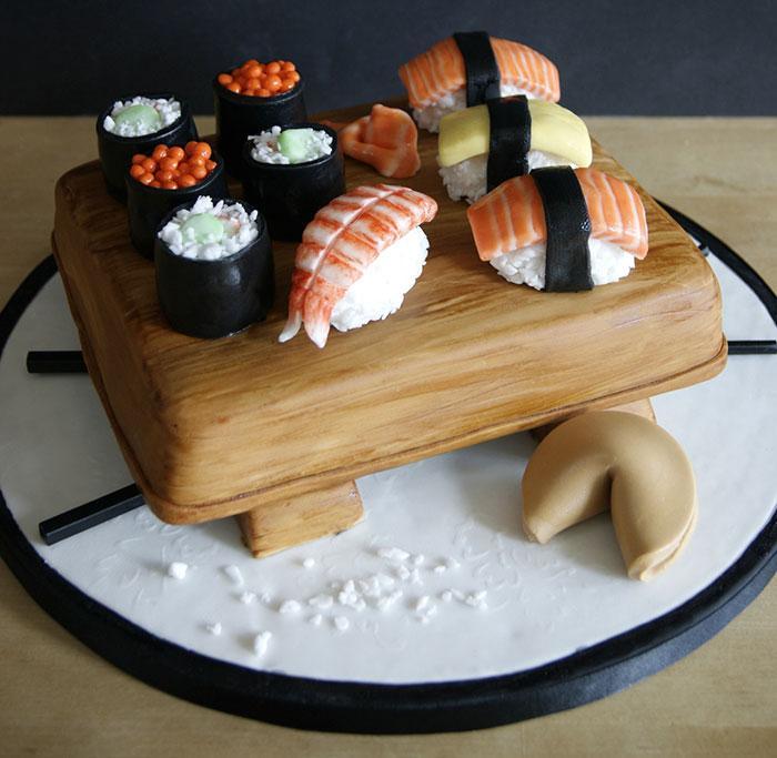 6. A selection of sushi cakes with a fortune cookie cake for 'desert'!