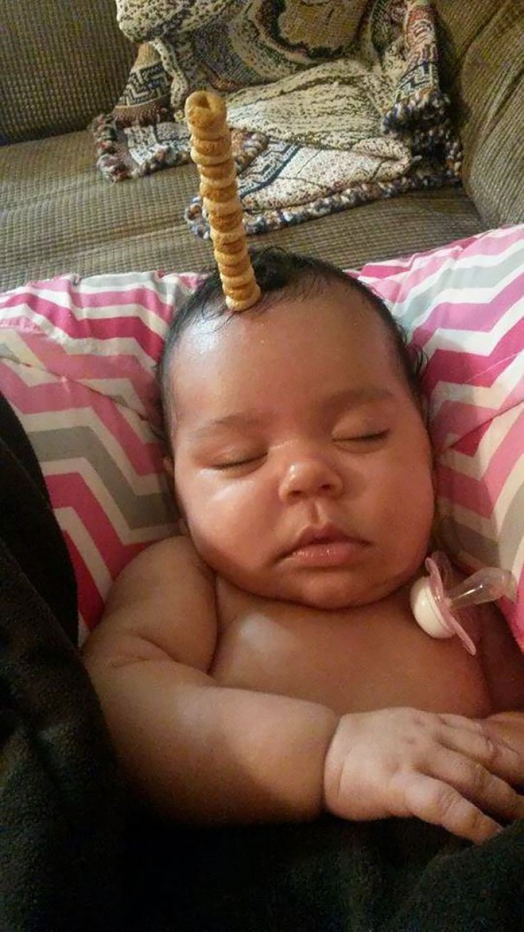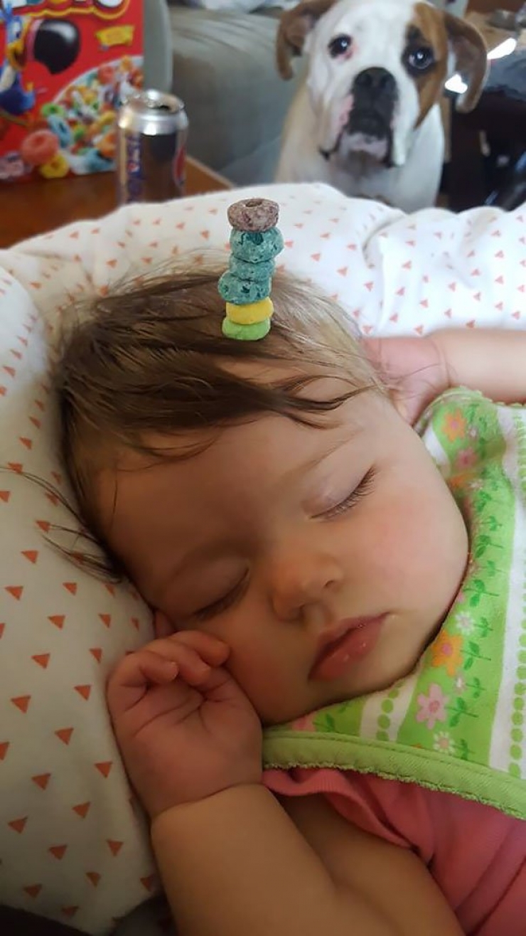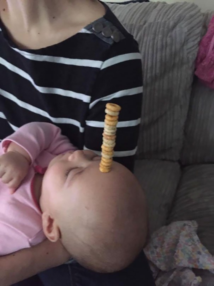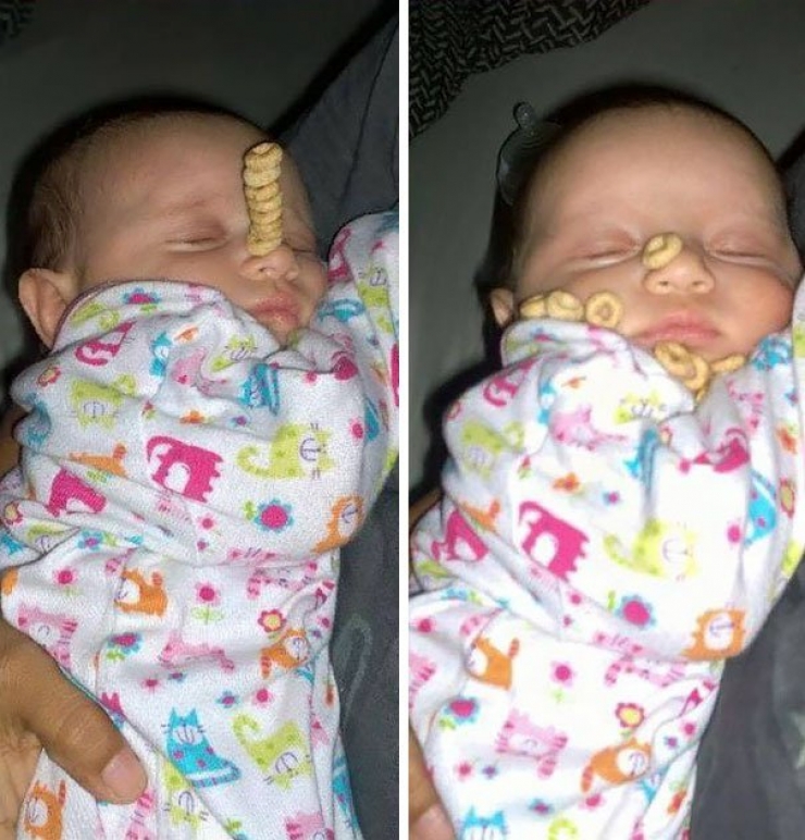 What’s it all about? Successfully putting as many Cheerios as possible on their baby’s head, while he or she is off in dreamland.
