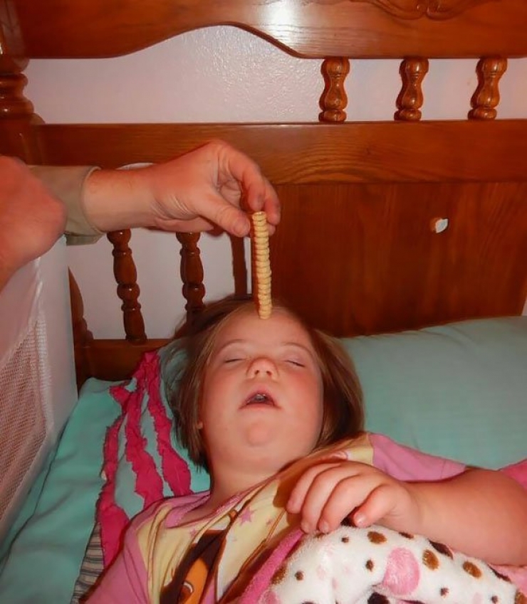 Dads have a new challenge on the internet: stacking the most Cheerios on their sleeping babies!