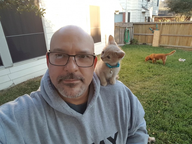 25. "My daughter asked me to look after her kitten today, so I sent her a selfie to reassure her that he was fine!"