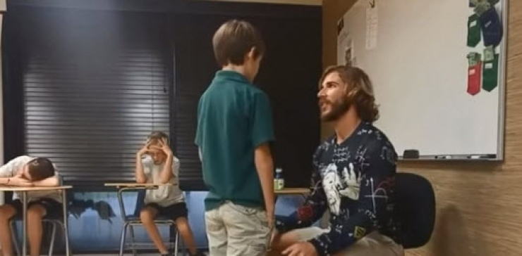 He starts each day's lessons by complimenting his students one at a time... Here's why: