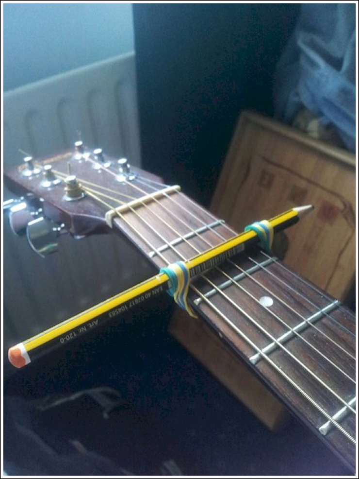 5. Someone who attached a pencil and paper to his guitar to make a capo