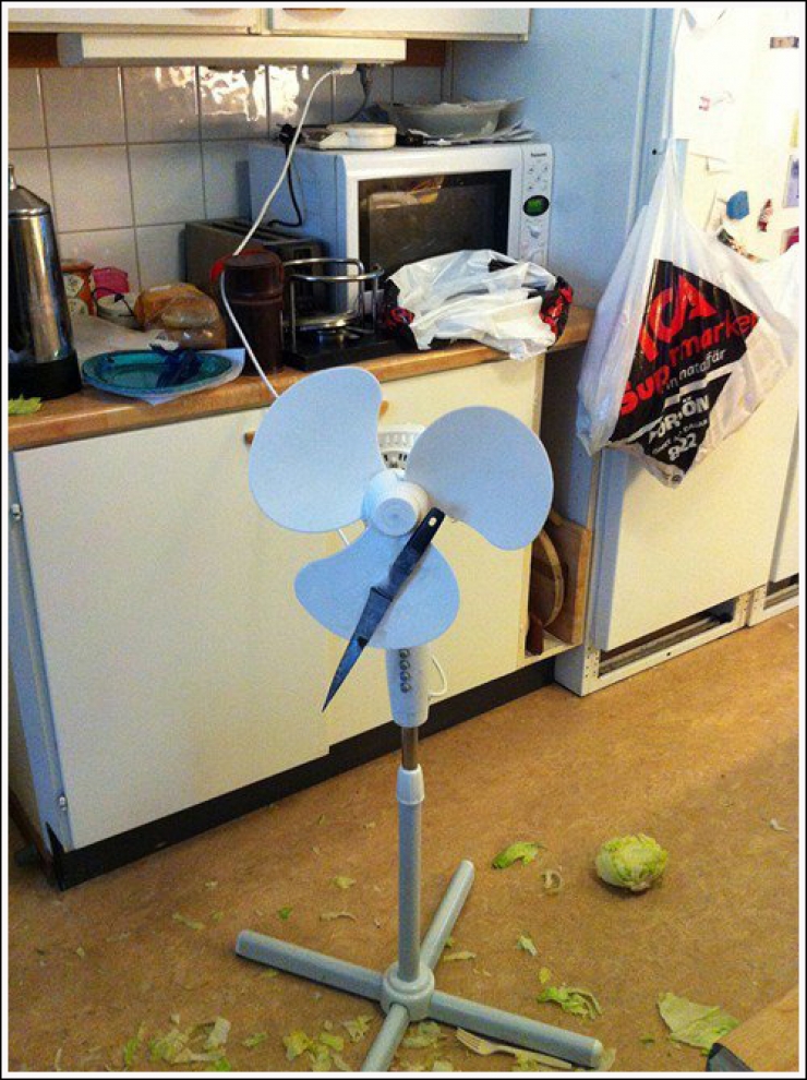 13. Someone who attached a knife to a fan to get a machine that cuts salads
