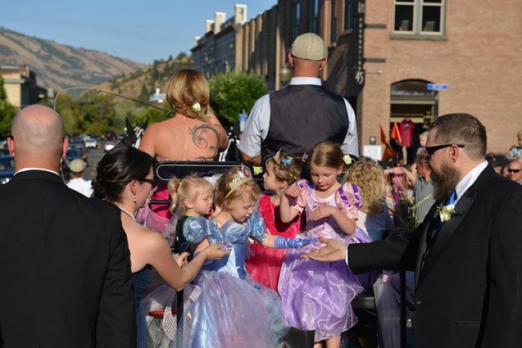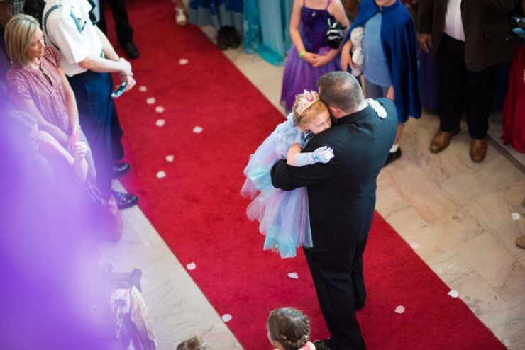 The police were a part of it and escorted her in a carriage to her ball. The princess's arrival was greeted by the crowd and especially by her Prince Charming... Her father!