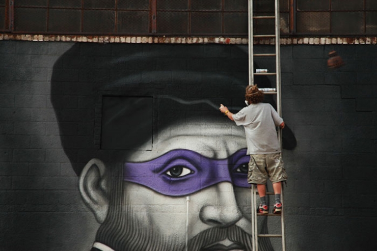 The Teenage Mutant Ninja Turtles were named in reference to four famous Renaissance artists: Leonardo (Leonardo da Vinci), Donatello, Michelangelo, and Raphael. New Zealand artist Owen Dippie has created a mural representing these four great figures of art and history.